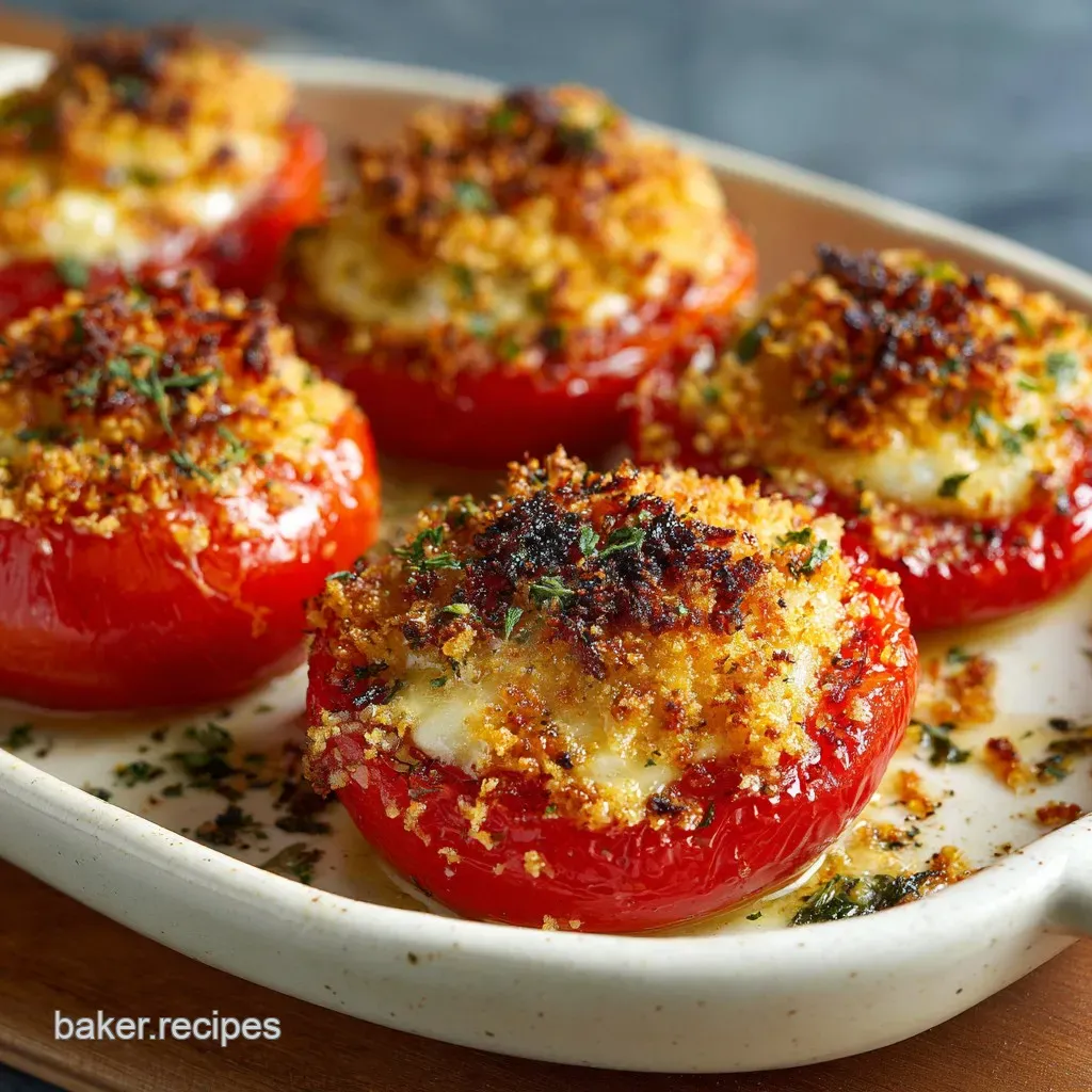Scaling Down (½ Recipe): If you're just cooking for two, use two tomatoes. Use a smaller baking dish (like a loaf pan) to keep them close together. Reduce the baking time by about 20%, checking them at 20 minutes.