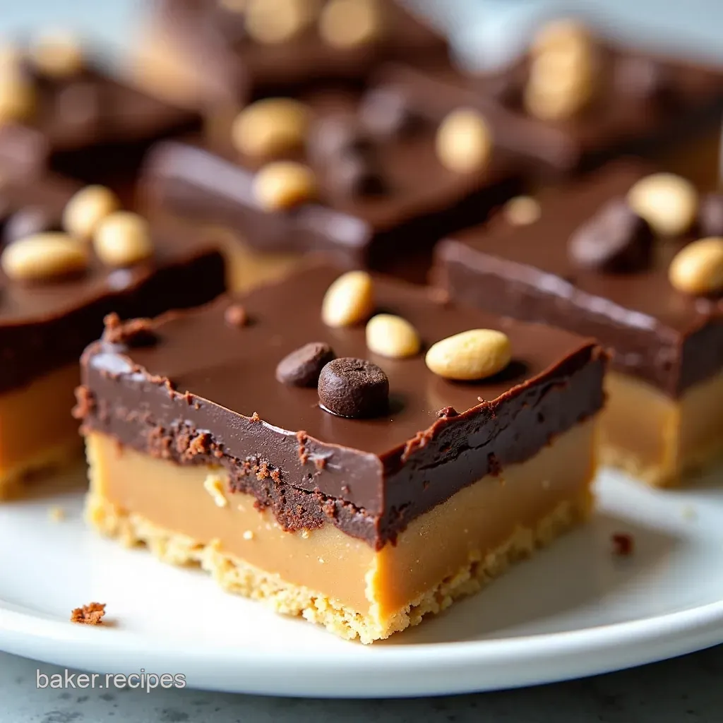 They're ace for parties. I once brought these to a summer barbecue, and they disappeared faster than you can say "Bob's your uncle!" This recipe is special because it needs no bake desserts without oven and the layers of biscuity crunch, creamy peanut butter, and rich chocolate ganache are sublime.